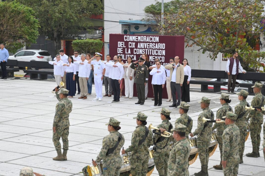 Durante el acto cívico, las autoridades que acompañaron al presidente municipal, junto con el público asistente, rindieron honores al Lábaro Patrio entonando el Himno Nacional Mexicano, a cargo de la banda de guerra y escolta de la Tercera Zona Naval. Al finalizar, el presidente reiteró de la vigencia de la Constitución como eje rector de las políticas públicas orientadas al bienestar social, la justicia y el desarrollo del país.