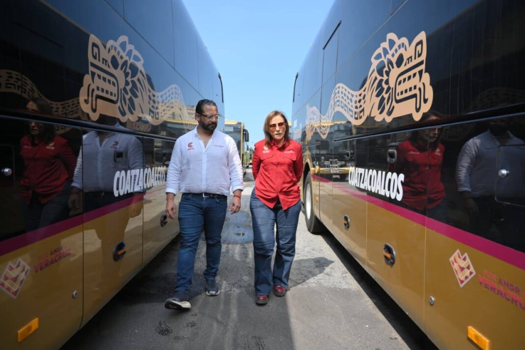 Coatzacoalcos, Ver.- El presidente municipal de Coatzacoalcos, Pedro Miguel Rosaldo García, acompañó esta tarde a la gobernadora de Veracruz, Rocío Nahle García a la primera entrega de las unidades híbridas Quetzalli, mismas que se integrarán a los medios de transporte con el objetivo de modernizar y trasformar la movilidad urbana en la entidad.