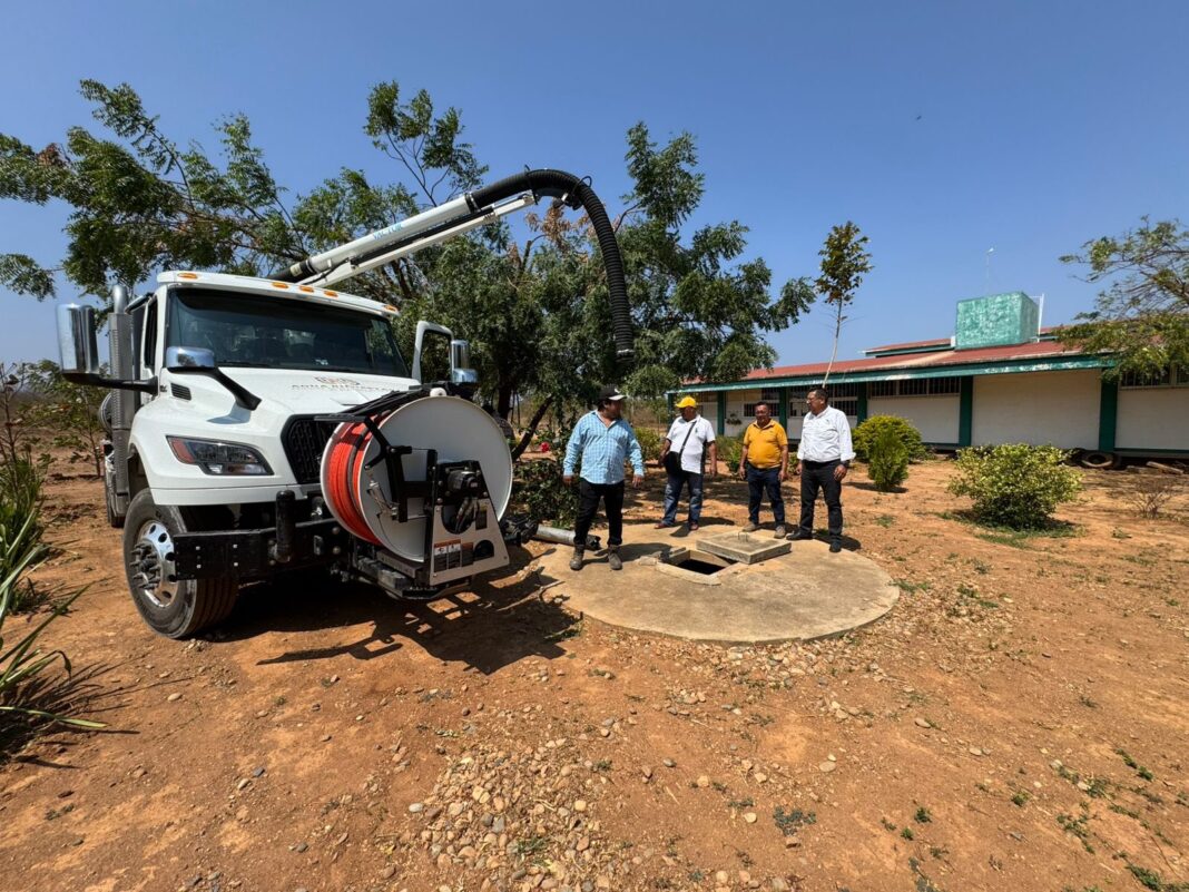 Santo Domingo Tehuantepec, Oax.- El Gobierno Municipal de Santo Domingo Tehuantepec, a través de la Dirección de Obras Públicas y apoyos del CEABIEN Oaxaca, han realizado labores de mantenimiento y desazolve de la fosa séptica y del sistema de drenaje del CECYTE Plantel 18 de Tehuantepec, y en las cercanías del Instituto Sor Juana Inés de la Cruz.