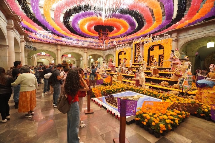 OAXACA DE JUÁREZ.— El Palacio de Gobierno de Oaxaca fue el escenario del Altar Monumental, el cual reunió flores de cempasúchil, calaveras, velas, papel picado, fruta de temporada e imágenes religiosas, y el cual fue apreciado por cerca de 15 mil oaxaqueñas y oaxaqueños, así como turistas nacionales e internacionales.