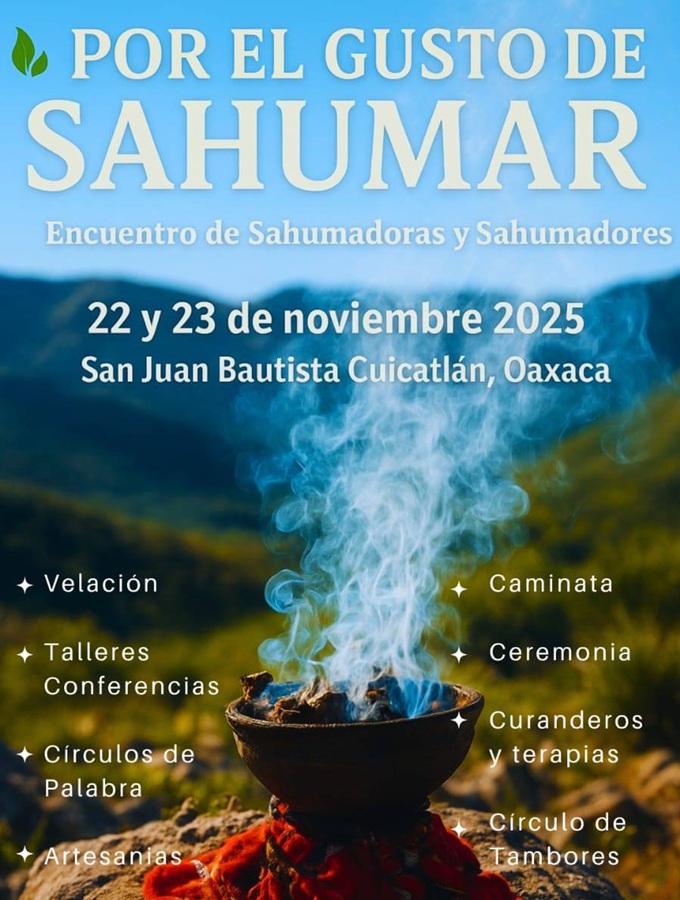 La convocatoria al Encuentro “Por el Gusto de Sahumar” está abierta para personas médicas tradicionales, terapeutas, músicas ceremoniales y guardianas de las plantas sagradas provenientes de distintas regiones del estado y del país.