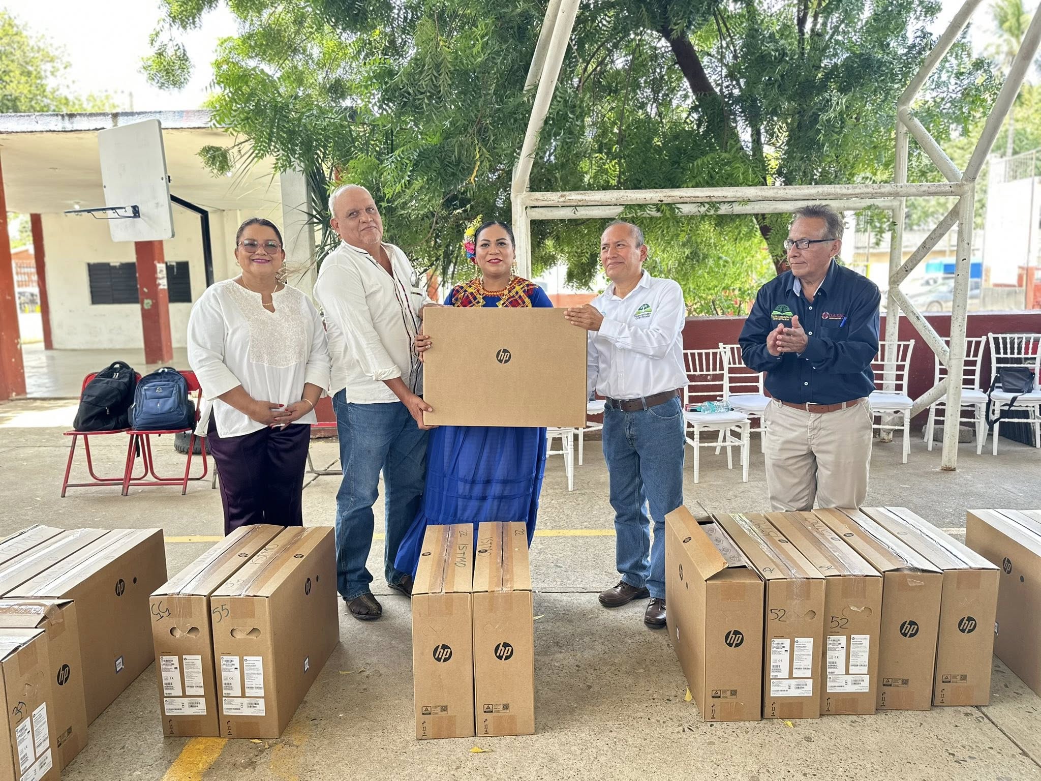 Entregan computadoras a Telebachilleratos de Tehuantepec