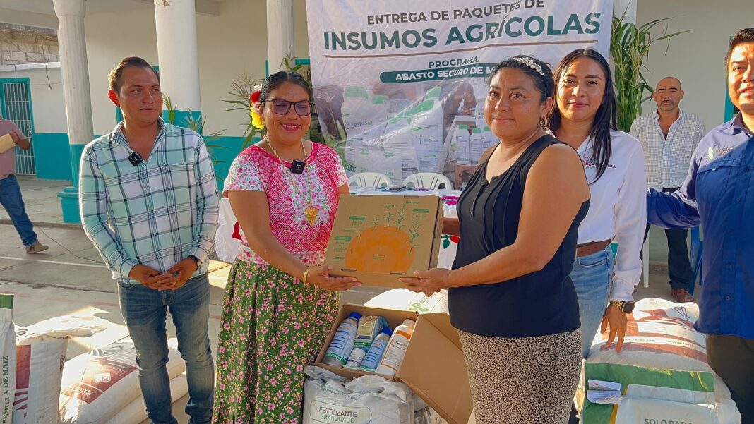 Santo Domingo Tehuantepec, Oax.- Agricultores de Tehuantepec, pertenecientes al Grupo de Trabajo “Fortaleza del Campo”, recibieron la entrega de paquetes de insumos agrícolas, dentro del programa “Abasto Seguro de Maíz”, con el objetivo de apoyar la producción local y fortalecer la economía de las familias campesinas.