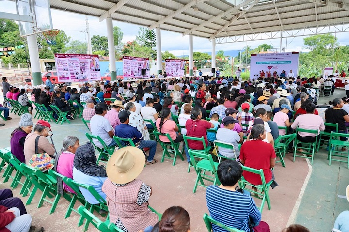 OAXACA.-El Sistema para el Desarrollo Integral de la Familia (DIF) Oaxaca continúa su labor en territorio para ampliar la cobertura de atención a los sectores más vulnerables. En una gira de trabajo de tres días, la Presidenta Honoraria del organismo, Irma Bolaños Quijano, visitó 14 municipios de los Valles Centrales, donde entregó apoyos alimentarios, aparatos funcionales, auditivos y lentes de vista cansada.