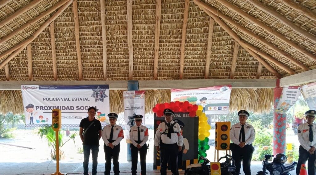 OAXACA.- Con el objetivo de fomentar el respeto a las normas de tránsito desde edades tempranas, la Policía Vial Estatal (PVE) participó en la inauguración de la Mini Ciudad Vial, instalada en el Parque de Experiencias Infantiles de Zipolite, en el municipio de San Pedro Pochutla. En este espacio, diseñado especialmente para la enseñanza infantil, se promovió el aprendizaje práctico sobre el uso responsable de la vía pública, reforzando valores fundamentales en materia de seguridad vial.