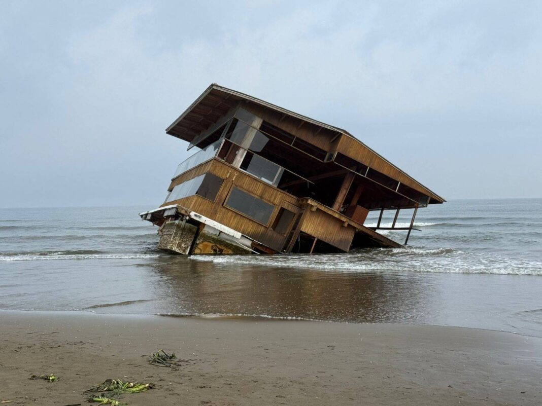 La estructura del restaurante “El Atracadero” fue dividida en dos partes, siendo la primera de ellas la que llegó a Los Pinolillos, Alvarado; mientras que la segunda parte recorrió la costa entre Alvarado y Antón Lizardo, hasta llegar a costas de Coatzacoalcos el viernes, recorriendo más de 500 km.